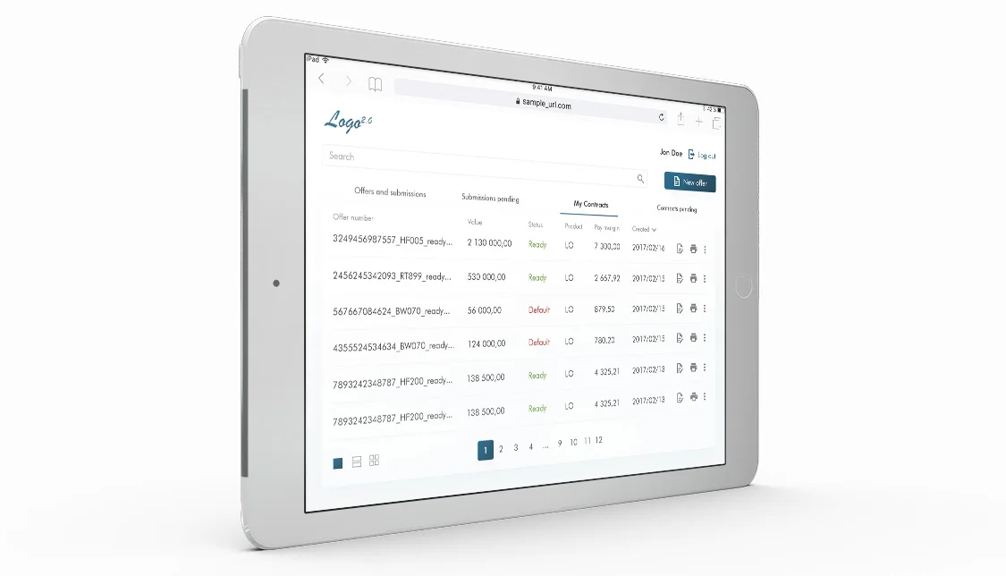 Dashboard - a central point where salesmen can view all pending, canceled, closed or drafted offers they made and manage them easily.